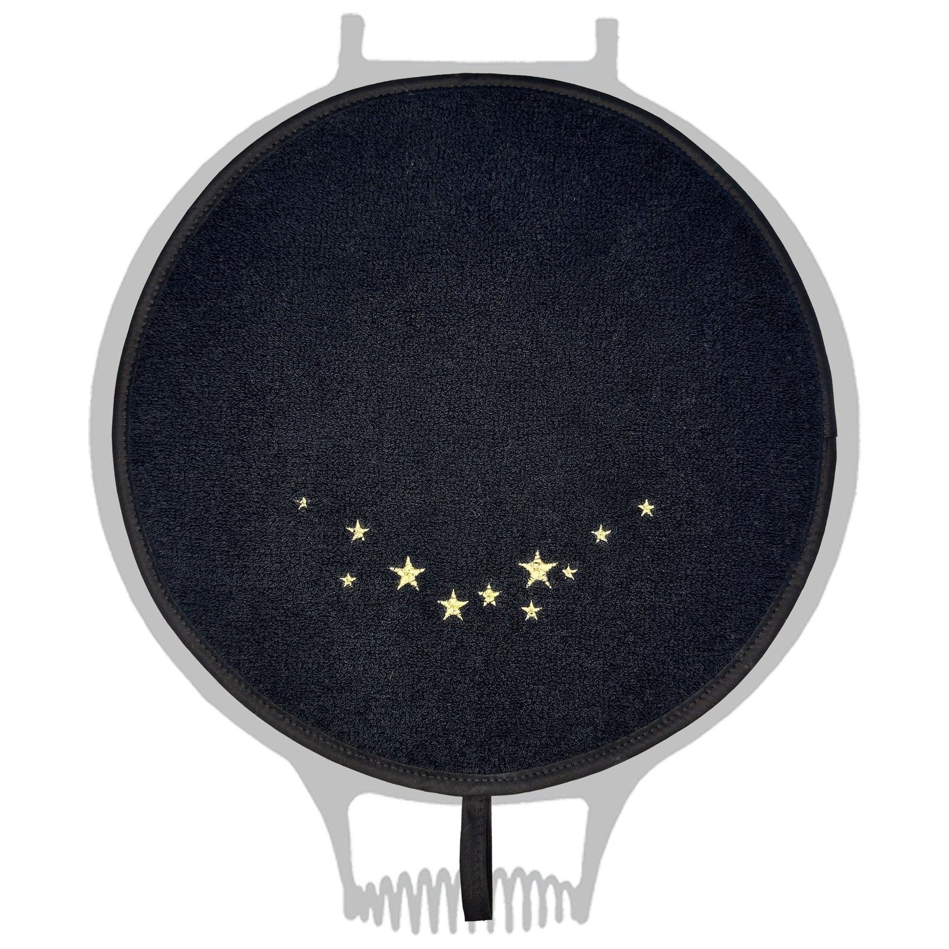 Constructed of two layers of black towelling, making it flexible so can be folded and used as a pot grab too, but featuring Gold embroidered stars for that simple but stylish Christmas look.